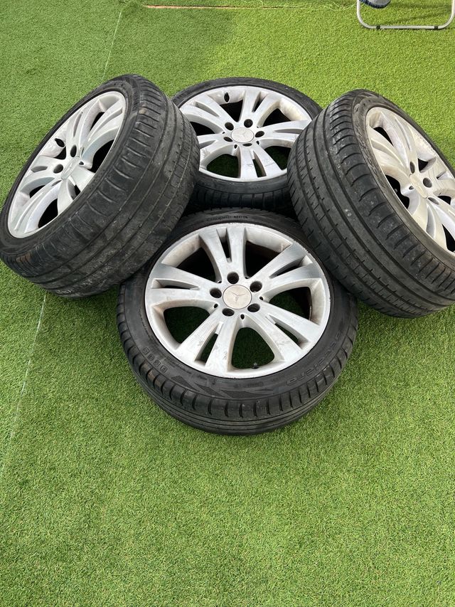 Juego de 4 llantas de aleación Mercedes-Benz de 17 pulgadas. - Diseño multirradio. - Acabado plateado. - Incluye neumáticos. - Balanceadas - Listas para colocar!