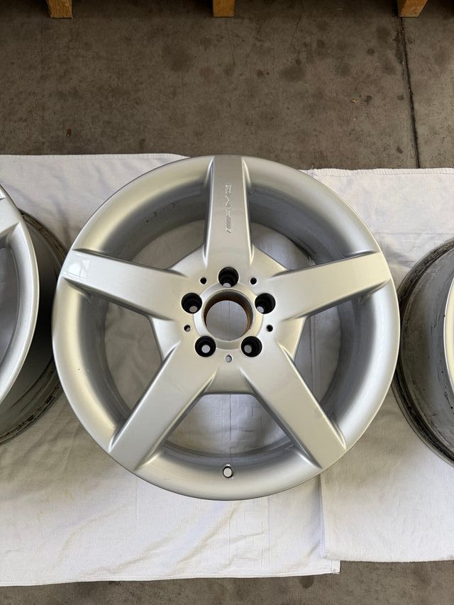 Juego de llantas Mercedes AMG. - Diseño deportivo de 5 radios. - Acabado plateado. - Logo AMG grabado.