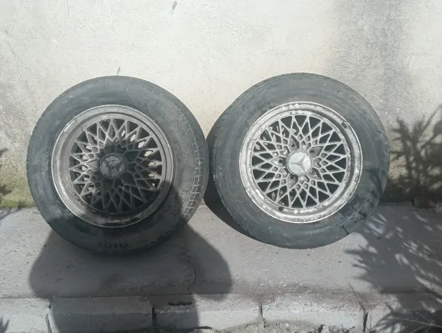 La llanta es un modelo estilo "BBS Mahle" de 15 pulgadas, popular en vehículos Mercedes-Benz de las series W107, W115 y W123.