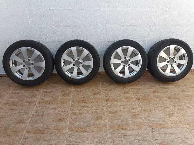 Juego de 4 llantas de aleación Mercedes-Benz con neumáticos Michelin. - Diseño multirradio plateado. - Neumáticos Michelin en buen estado.