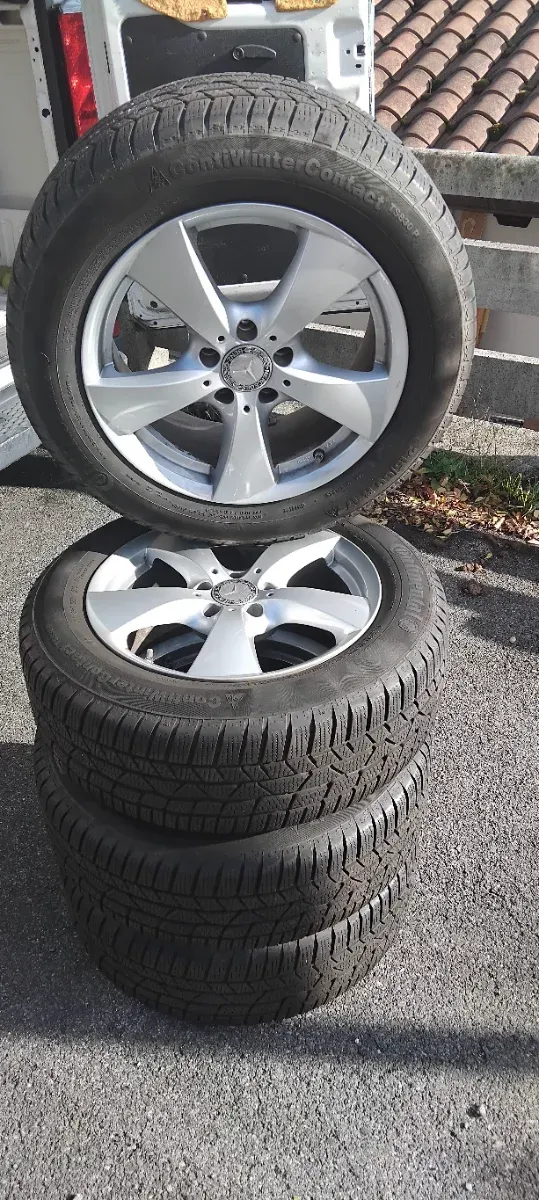 Juego de llantas originales Mercedes. + Neumaticos casi nuevos Viano vito clase v etc.. - Diseño deportivo de 5 radios. - Acabado plateado.