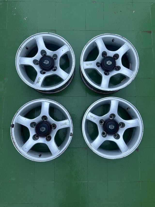 Juego de 4 llantas OZ para Suzuki. - Fabricadas en aleación ligera. - Acabado plateado. - Incluyen tapas centrales con logo Suzuki.