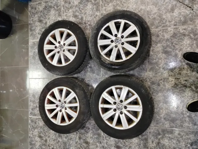 Detalles del productoJuego de 4 llantas R15 de Volkswagen Golf, con sus neumáticos.