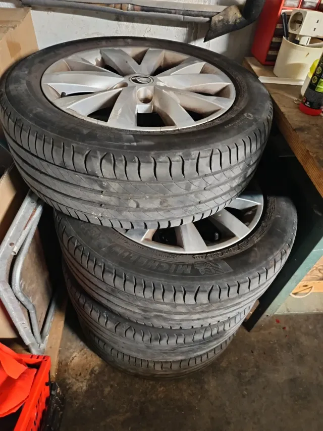 Juego de 4 llantas de aleación para Skoda. 205 55 17 Tornillería 5x112 - Diseño deportivo de 5 radios dobles. - Acabado plateado. - Compatibles con varios modelos Skoda.