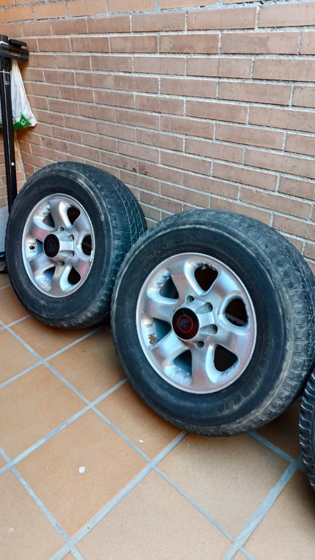 Juego de 4 llantas de aluminio para todoterreno. Listas para montar. - Diseño de 5 radios. - Acabado plateado. - Centro con detalle en rojo.