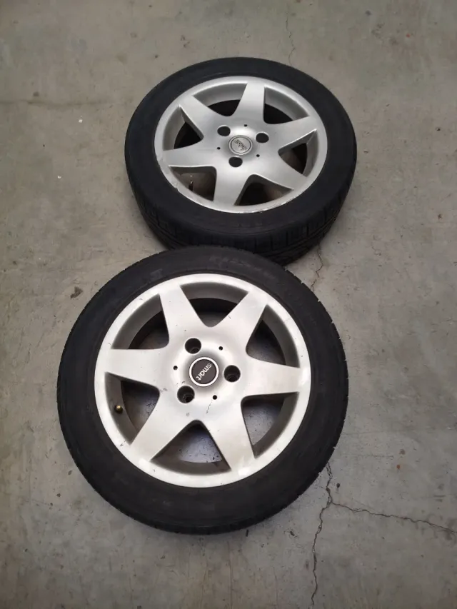 Detalles del productoJuego de llantas traseras para Smart Fortwo. 1 está un poco abollada , pero se pueden usar , los neumáticos están bien ; 25€ por llanta con neumático