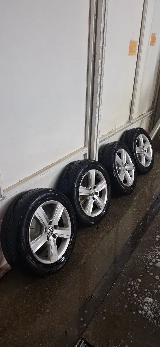 Detalles del productoJuego de cuatro llantas de aleación para Volkswagen Golf. Presentan un diseño de banda de rodadura en zigzag.