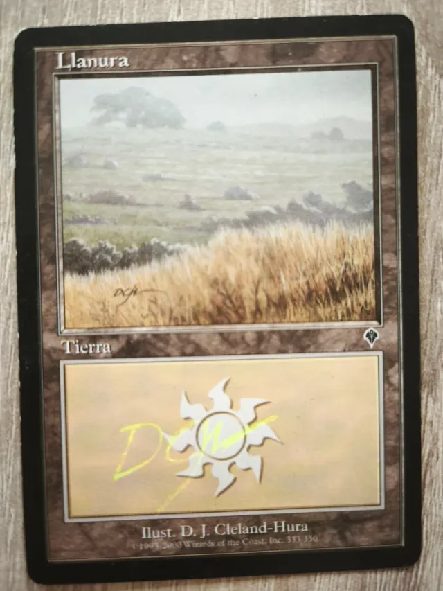 Detalles del productoCarta de Magic The Gathering, Llanura de la expansión Invasión. La carta está firmada por el artista.