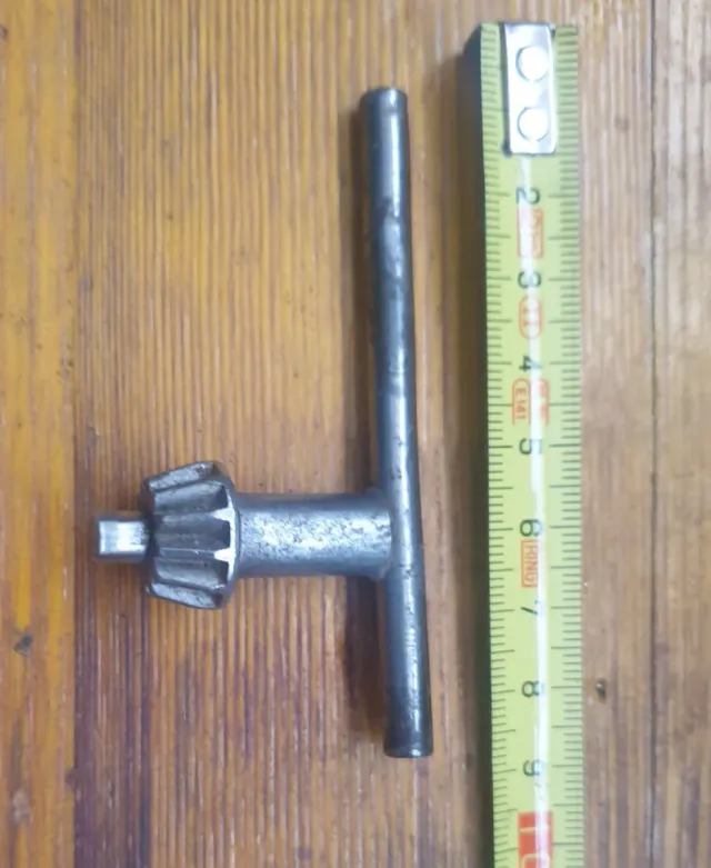Llave tipo T para apretar y aflojar el mandril de un taladro. - Fabricada en metal. - Diseño en forma de T para un agarre cómodo.