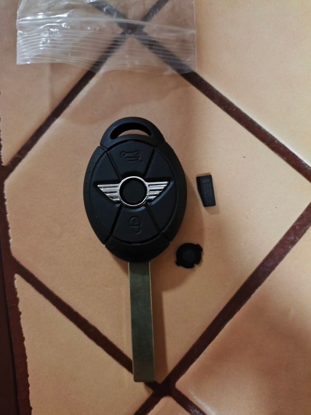 Llave de arranque para Mini One.Virgen con carcasa espadín y micro chip - Carcasa negra. - Emblema de Mini. - Parte metálica de la llave.