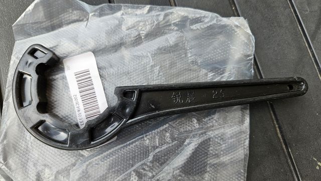 Llave de montaje para tuberías de polietileno. - Fabricada en plástico negro resistente.