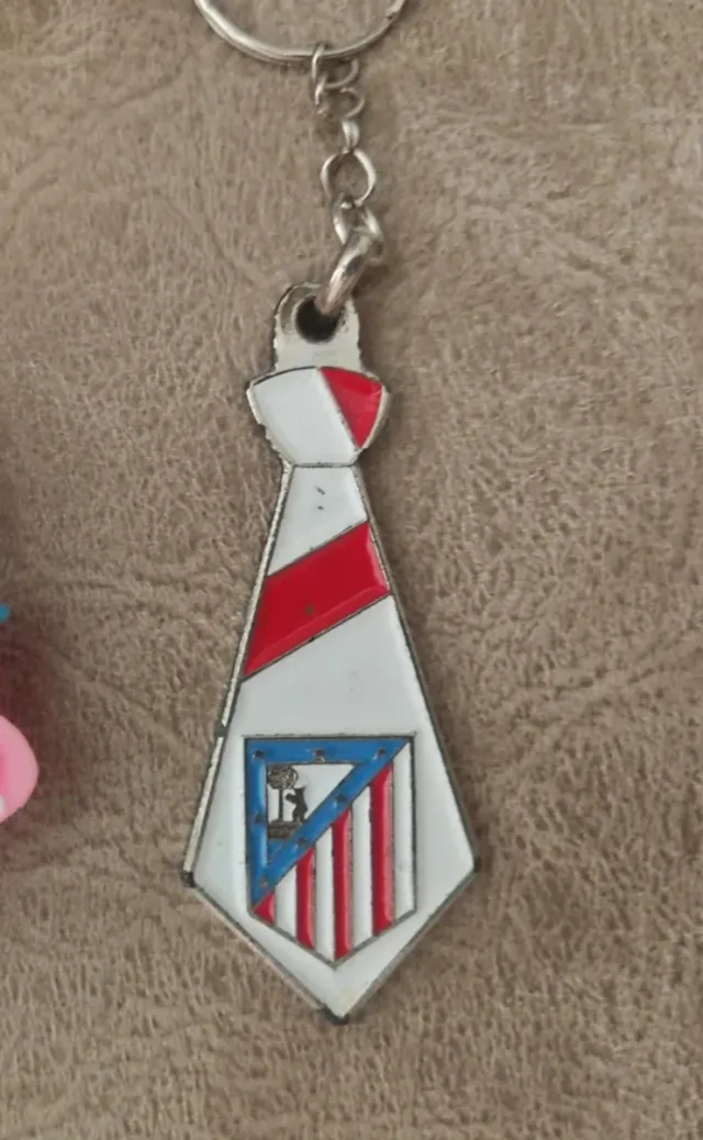 Llavero con el escudo del Atlético de Madrid. - Diseño de corbata con los colores del equipo. - Escudo del club en la parte inferior.