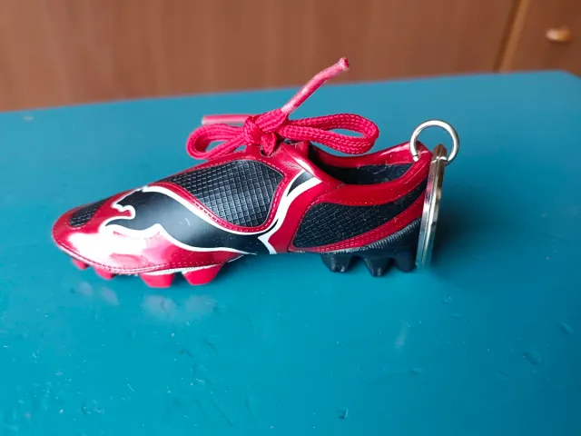 Detalles del productoLlavero Bota de Fútbol de Eto'o. Marca Puma. En color rojo y negro, con detalles blancos y el logo de Puma. Incluye cordones rojos y anilla para llaves.