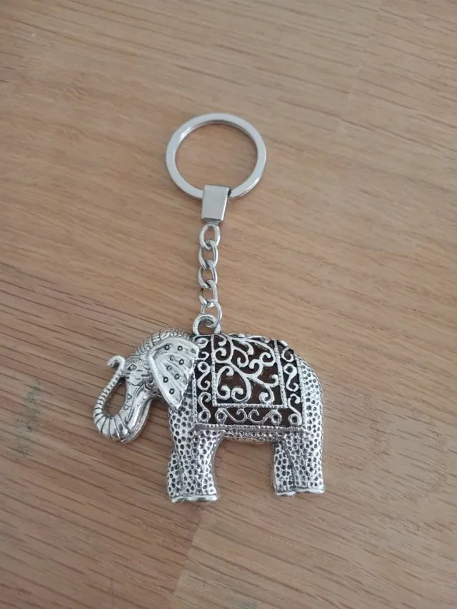 Llavero con un diseño detallado de elefante. - 12 cm - Colgante de elefante plateado. - Detalle de filigrana en la manta del elefante.