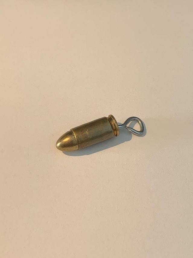 Llavero estilo militar o policía, representando un cartucho de 9 mm