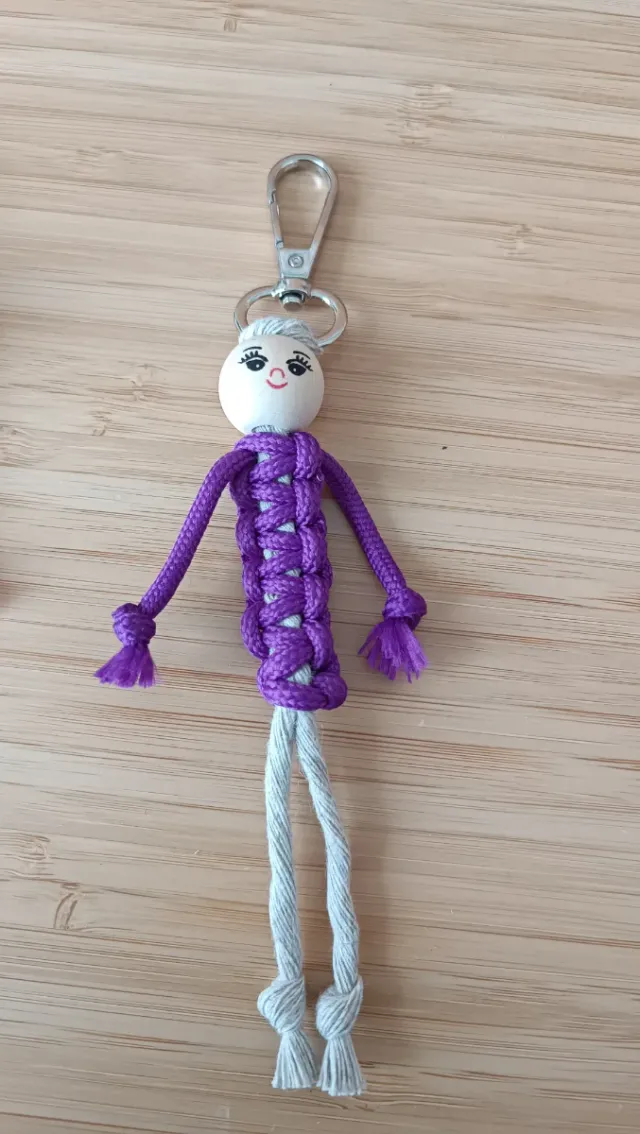 Detalles del productoLlavero artesanal con figura de persona hecha a mano.
