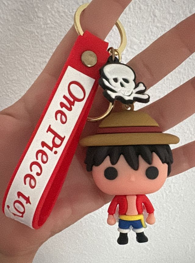 Detalles del productoLlavero con figura de Luffy de One Piece, inspirado en el estilo Funko Pop.