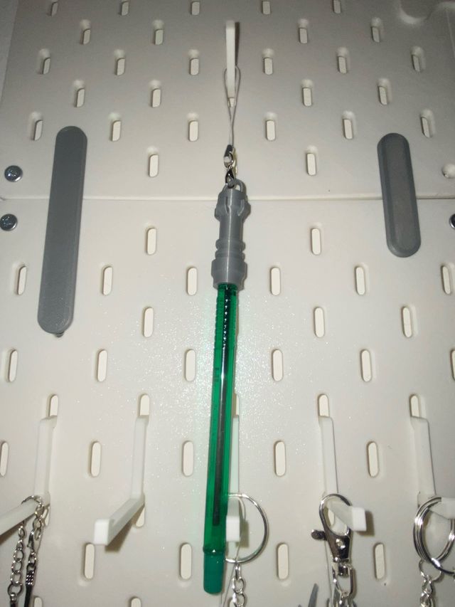 Detalles del productoLlavero con diseño inspirado en Star Wars, con detalles de Lego, funciona de tapa de bolígrafo para simular una espada láser funcionando.