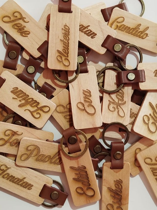 Llavero madera cuero grabado personalizado