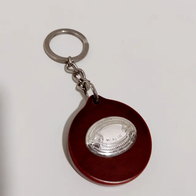 Llavero madera y plata con placa para inscripción