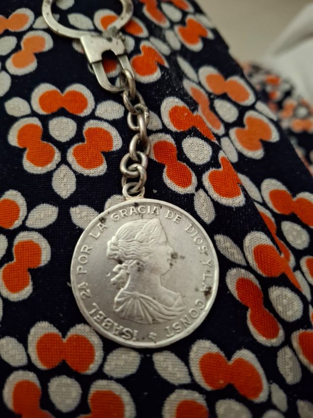 Original llavero con moneda de Isabel II. - Moneda de plata. - Diseño isabelino.
