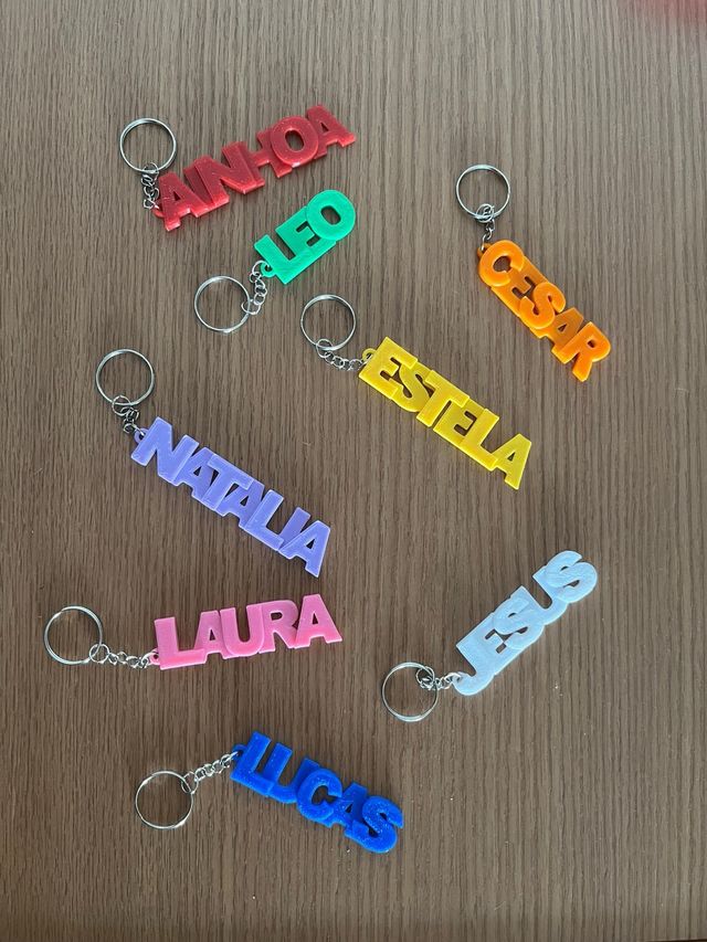 Detalles del productoLlavero con nombre personalizado, hechos con impresión 3D. Ideales para regalar o para uso personal, para la mochila del colegio o del gimnasio, etc.