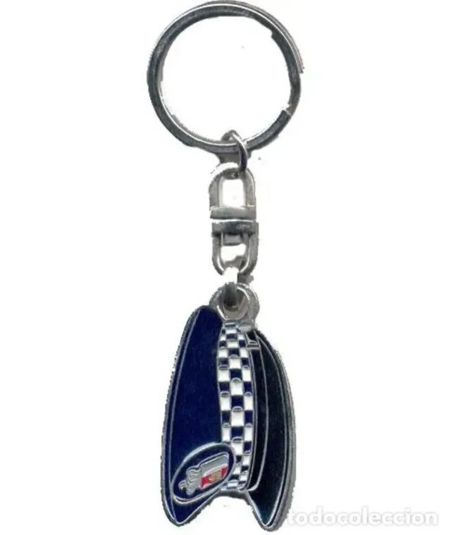 Detalles del productoLlavero con diseño de la Policía Local de Albacete. Presenta un escudo con detalles en cuadros y colores azul y plateado.