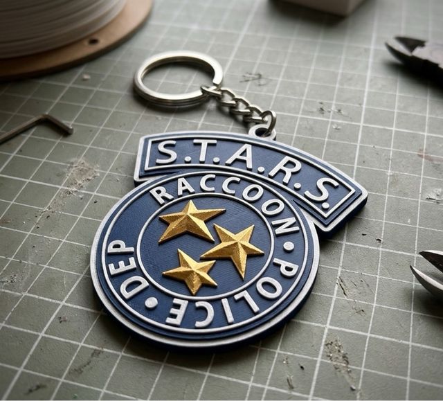 Detalles del producto¡Atención fans de Resident Evil! Vendo llavero exclusivo del emblema S.T.A.R.S. con acabado premium. No es el típico accesorio plano; tiene un relieve real y colores vibrantes que resaltan las tres estrellas doradas sobre el fondo azul marino del R.P.D.