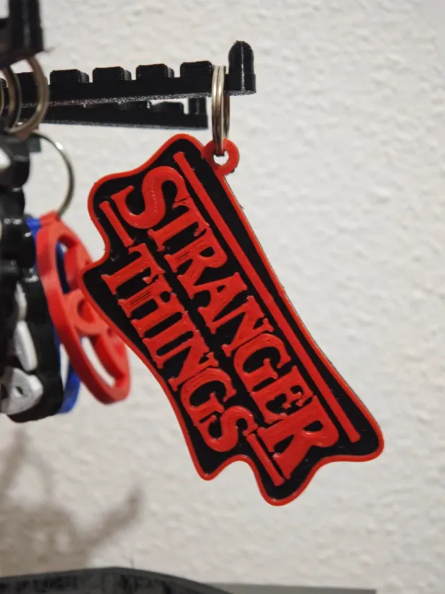 Llavero con el logo de la popular serie Stranger Things. - Diseño en relieve. - Colores: rojo y negro.