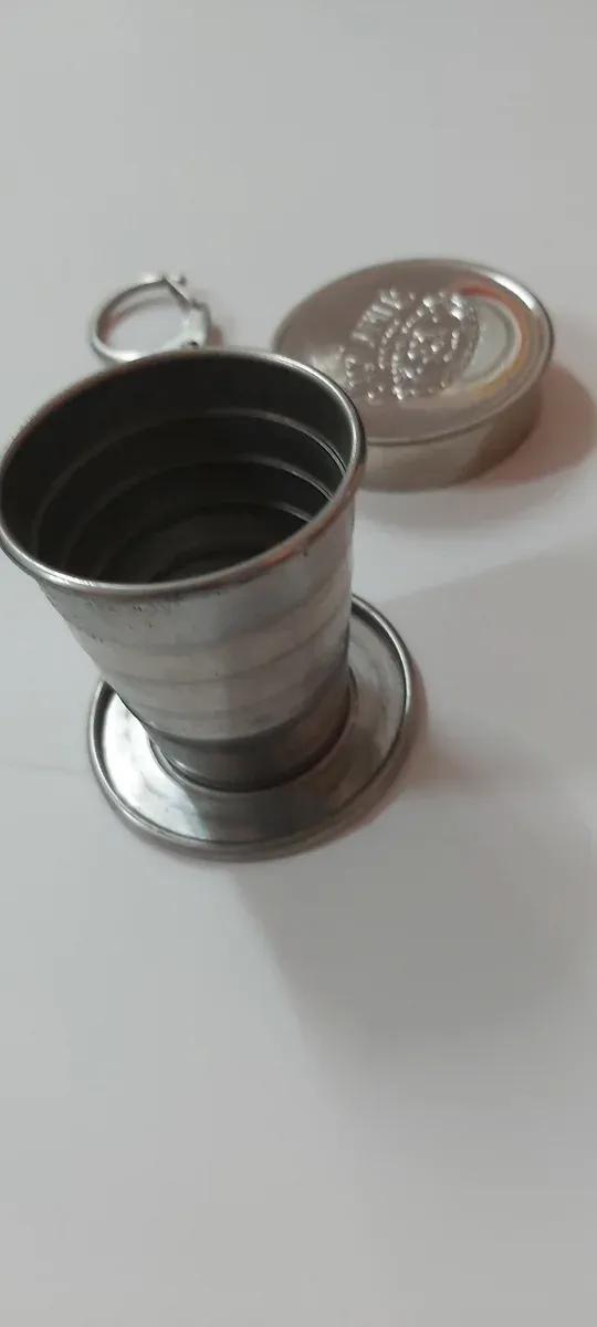 Práctico llavero con un vaso plegable de Jack Daniels. - Diseño metálico. - Ideal para llevarlo contigo a todas partes.