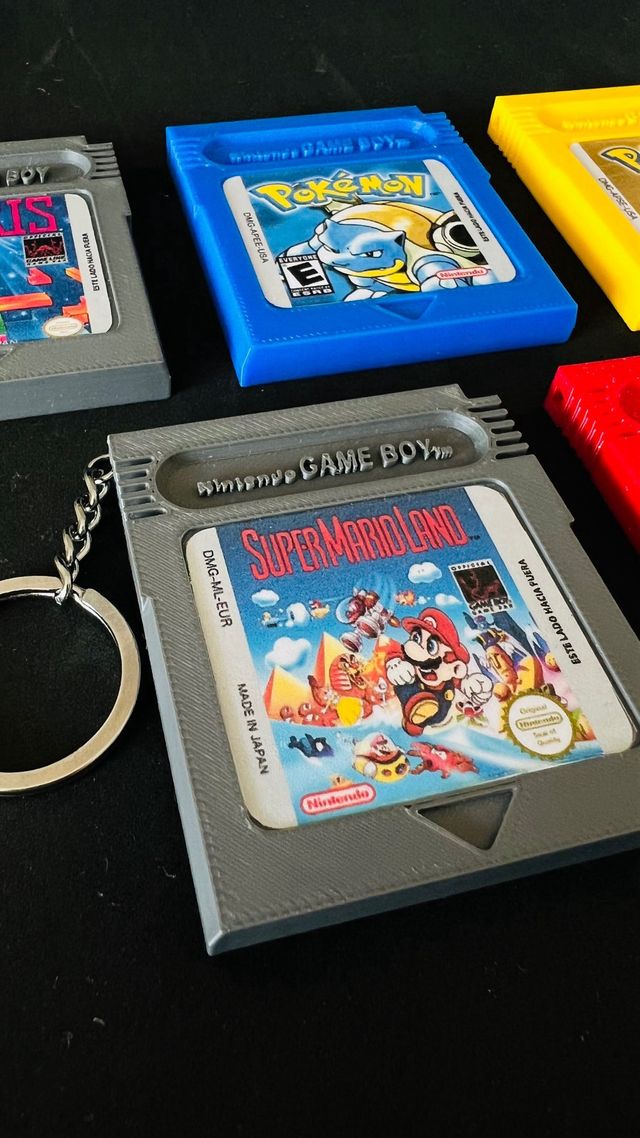 Detalles del productoLlaveros de los cartuchos de Game Boy, impresos en 3D con su anilla y cadena incluida.