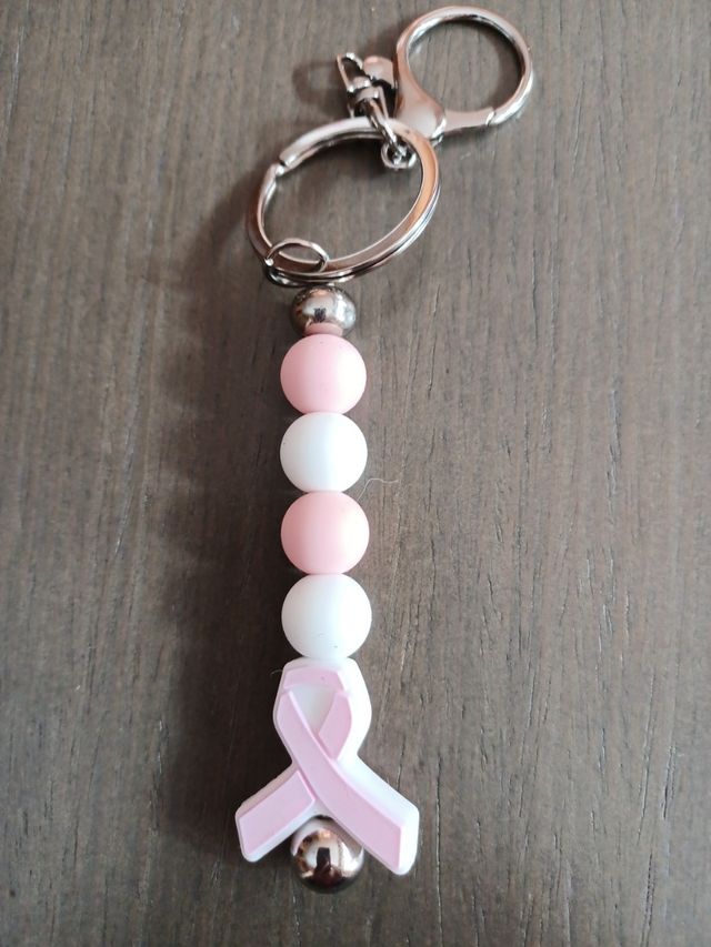 Llaveros con cinta rosa y cuentas