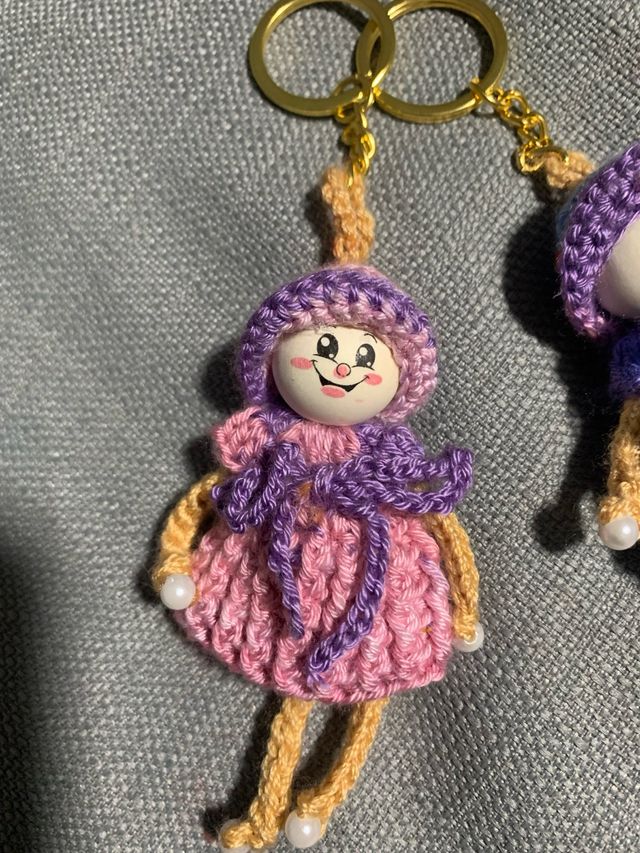 Adorables llaveros de muñeca hechos a mano a crochet. Se puede elegir color