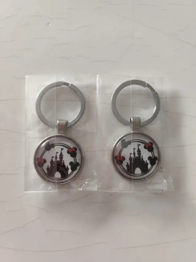 Detalles del productoSet de dos llaveros con diseño de castillo Disney y Minnie Mouse.