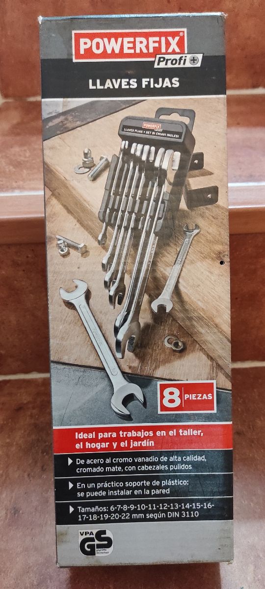 Detalles del producto8 Llaves fijas de acero al cromo-vanadio de alta calidad, marca "POWERFIX". En soporte de plástico aprop para colgar. Detalle de los tamaños en foto adjunta. Nuevas, en su caja!! Medidas del producto