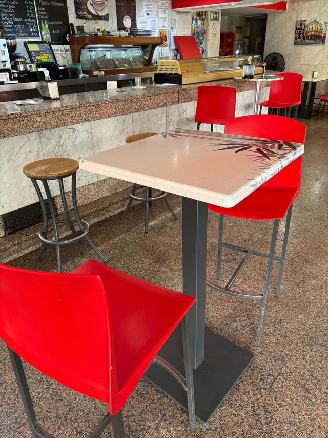 Vendo dos mesas altas y 6 taburetes en perfectas condiciones listas para cualquier sitio de hostelería , en persona