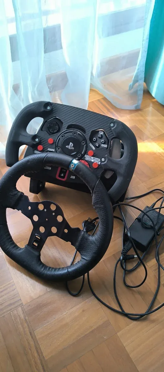 En las fotos se ve montado con el mod de F1 pero también incluyo el aro original + instrucciones que me venían con el mod al comprarlo. Tiene también el mod de levas magnéticas e incluyo un soporte para poder usar el móvil como dashboard hecho con impresora 3D y tiene también hecho el cable para poder usar los pedales a través de USB sin necesidad del volante (solo para PC).