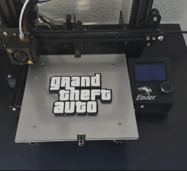 Detalles del productoLogo de Grand Theft Auto impreso en 3D. Un diseño llamativo para los fans del juego.