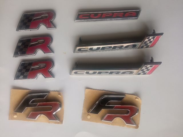 Detalles del productoLogo de fr y Cupra con la bandera, es original, esta completo y en buen estado válido para Ibiza Cupra 6k2, Córdoba Cupra 6k2 y León Cupra mk1
