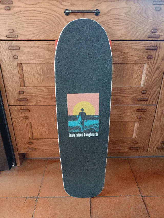 Detalles del productoTabla de longboard con un diseño gráfico inspirado en el surf y el atardecer.