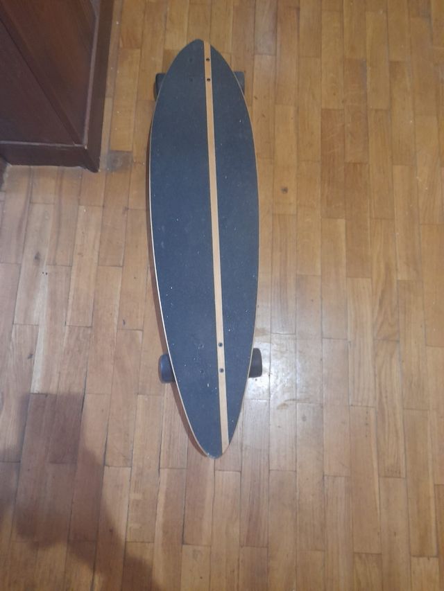 Longboard Oxelo modelo 2008. - Tabla con diseño alargado - Ruedas negras visibles.