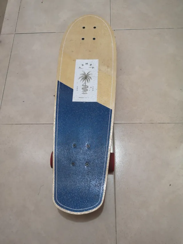 Longboard Oxelo Yamba con diseño bicolor. 4 usos contados. - Tabla de madera. - Rodamientos Abec 7