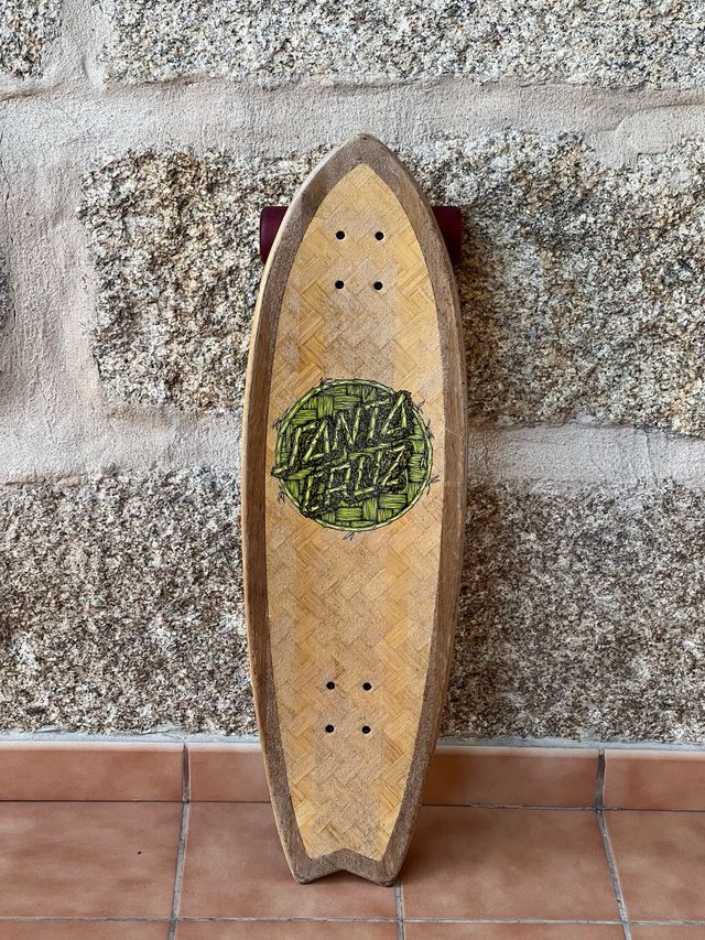 Longboard Santa Cruz en buen estado. Ideal para principiantes. - Construcción de bambú. - Diseño clásico de Santa Cruz. - Ruedas rojas originales.