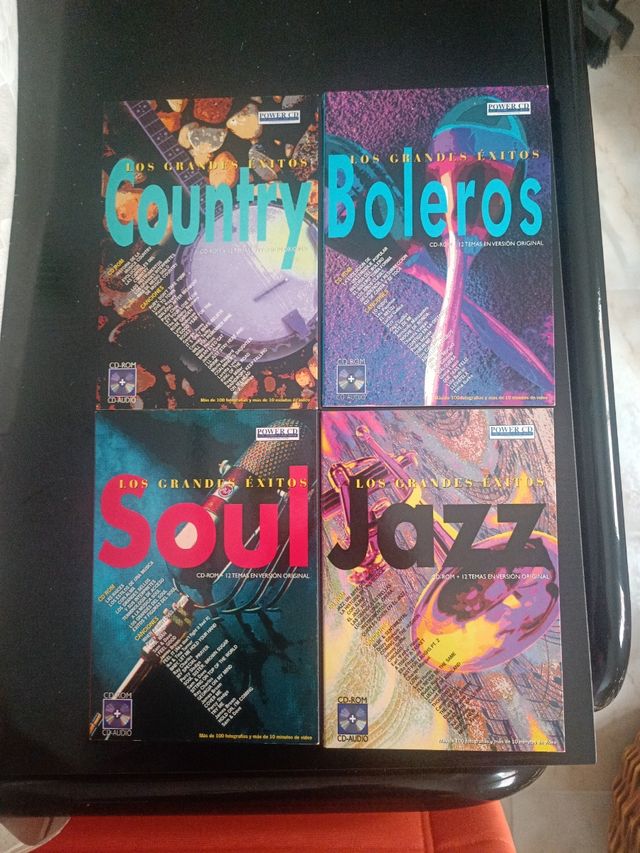 10 CD de música, Rock, Salsa,Boleros,Soul,Blues,Jazz,Pop, Flamenco, Tango,Country, estan en perfectas condiciones, las cajas un poco rozadas