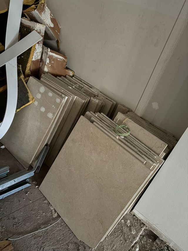 Detalles del productoSe venden losas de mármol en tono crema, con unas medidas de 70x78 cm y un grosor de 2 cm. Ideales para proyectos de construcción o renovación. 8 euros por unidad. Hay 45 losas.