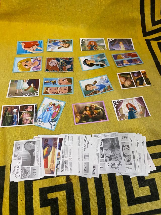 Detalles del producto¡Lote de cromos oficiales de Panini Disney Princess!Incluye personajes de Ariel, Bella, Mérida, Rapunzel, Jasmine y más.