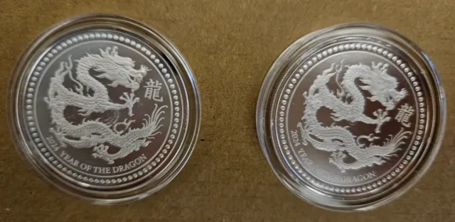 Lote 1+2 Monedas Plata Año del Dragón 2024 Samoa