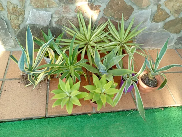 Detalles del productoLote de 10 plantas de agave de diferentes variedades y tamaños. Ideales para coleccionistas o para dar un toque exótico a tu jardín.