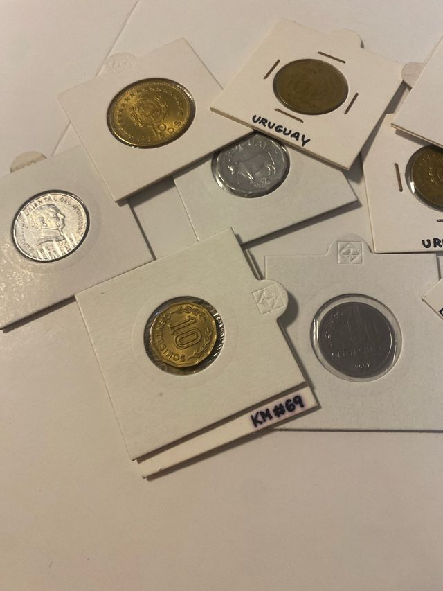 - Algunas monedas muestran inscripciones como 10 CENTESIMOS y URUGUAY.