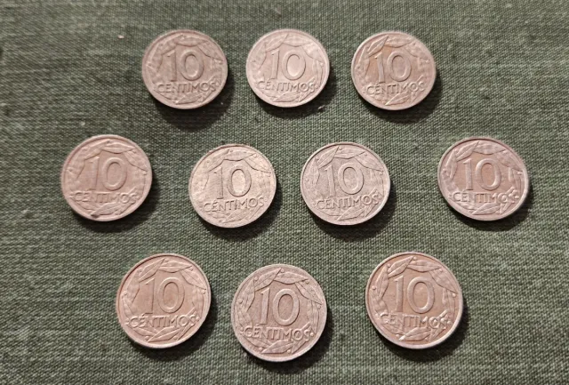 Lote de diez monedas de 10 céntimos del año 1959. - Cada moneda tiene un valor de 10 céntimos. - Año de acuñación: 1959.